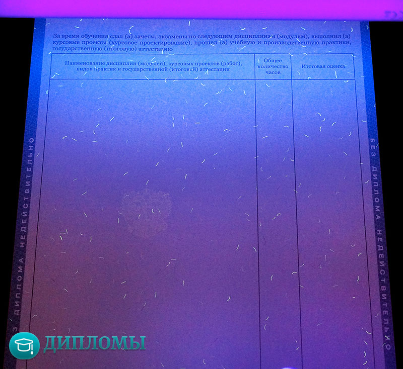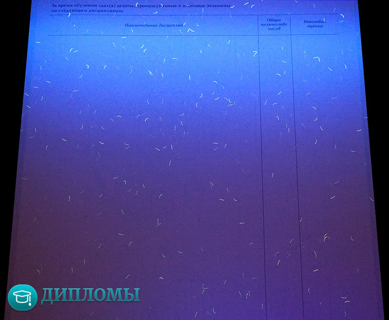 - защитные знаки в виде голограмм, микротекстов, элементов, которые видны при ультрафиолетовом свечении;